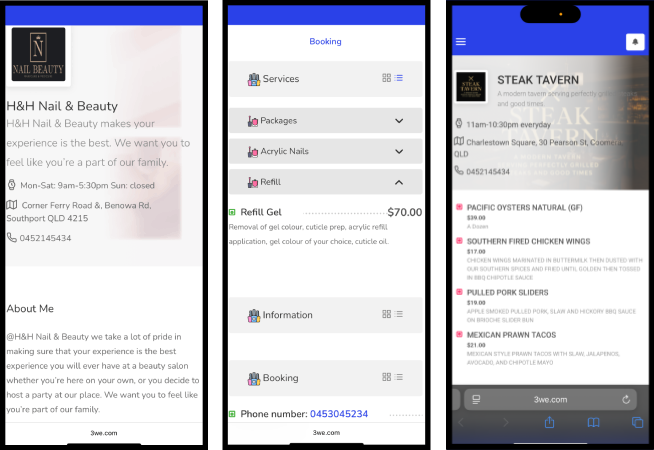 The content on 3we.com is clear, concise, and engaging. Descriptions for both Nail Spa Beauty and Restaurant menus are well-written, easy to read, and perfectly match the elegant design. Excellent work!
